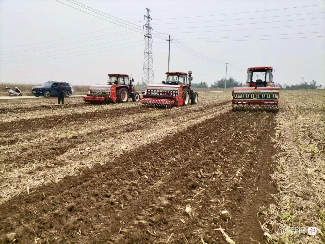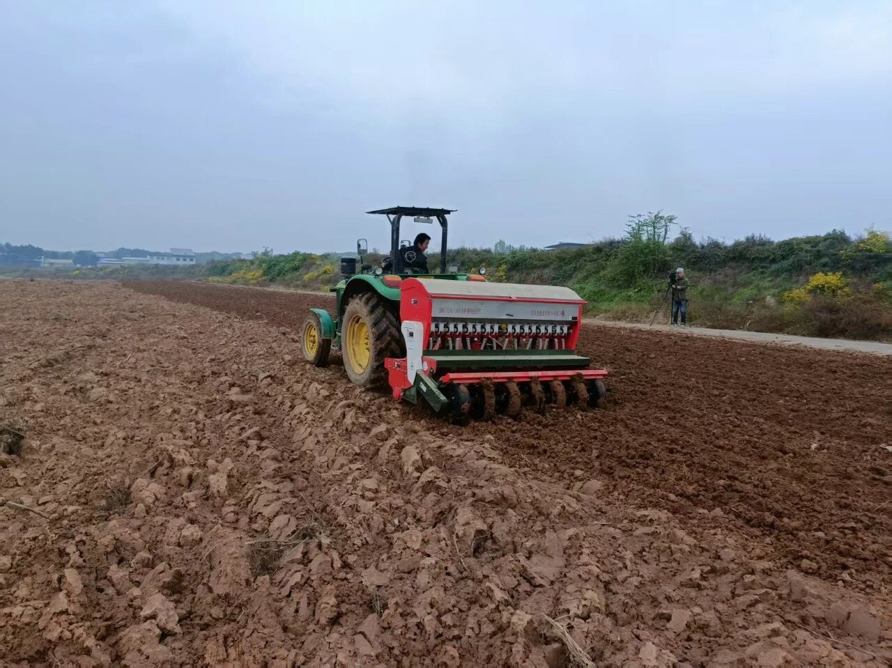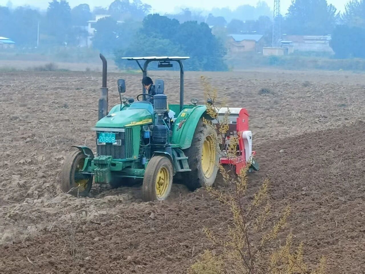 在百公里外的铜川市耀州区小丘镇中原村,亚澳农机同样成为抢种主力。“播种期推迟了近十天,土壤又湿,最怕播深不均和倒伏。”农机手操控着亚澳宽幅沟播机穿梭田间,机具搭载的指夹式排种器实现精准下种,配合可调节播深系统,将播种深度严格控制在2—4cm的最佳范围,既满足铜川市农机推广站副站长姚关盈提出的“浅播抢积温”要求,又通过均匀播种避免了“播量过大易倒伏”的风险。截至目前,铜川市已调度1600余台套农机投入秋播,亚澳机具凭借“旋耕、播种、施肥一体化”优势,大幅提升了湿墒地块的作业效率,助力农户把延误的农时抢回来。